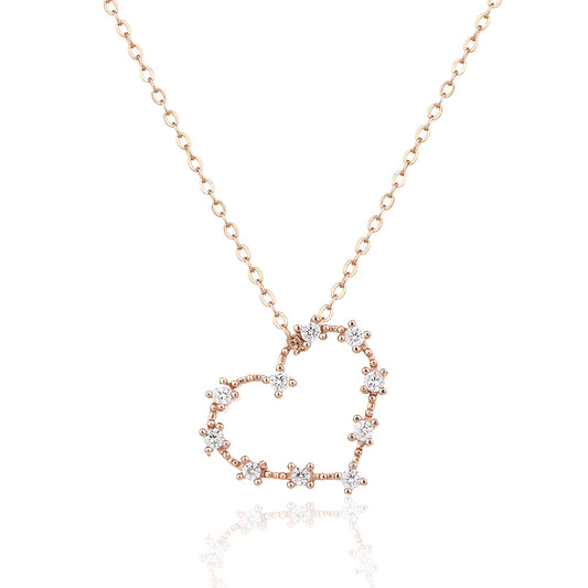 שרשרת לב זירקונים קלאסית-רוז גולד
