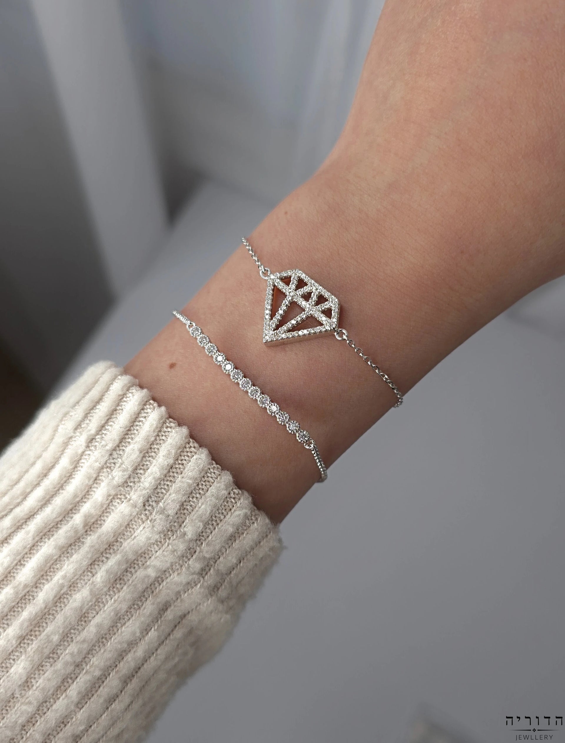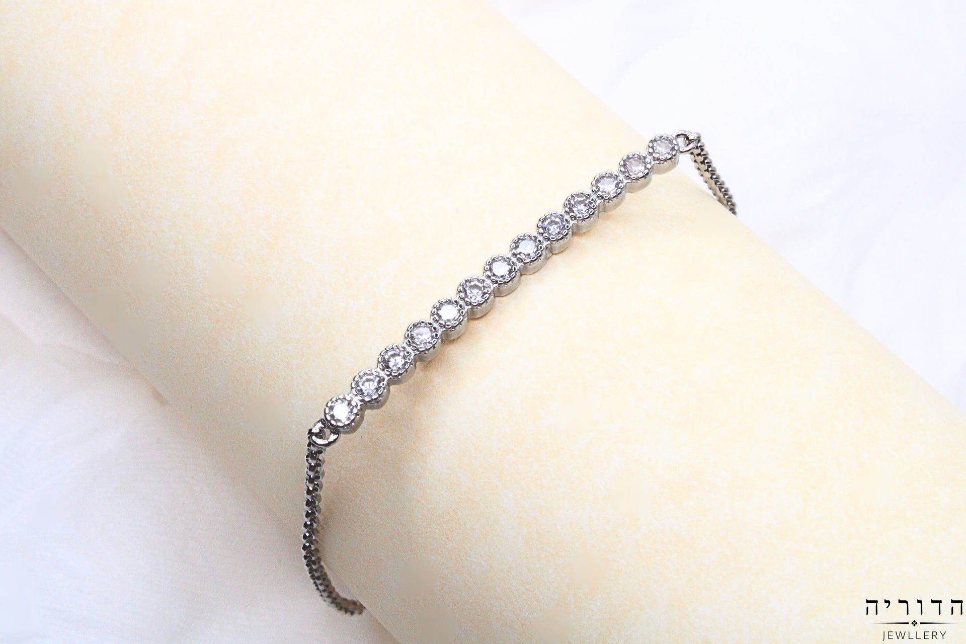 צמיד כסף טיפות במסגרת עם אבני זרקון