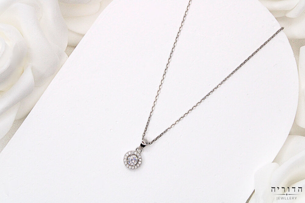 שרשרת סוליטר עגול כפול משובץ זרקונים כסף 925