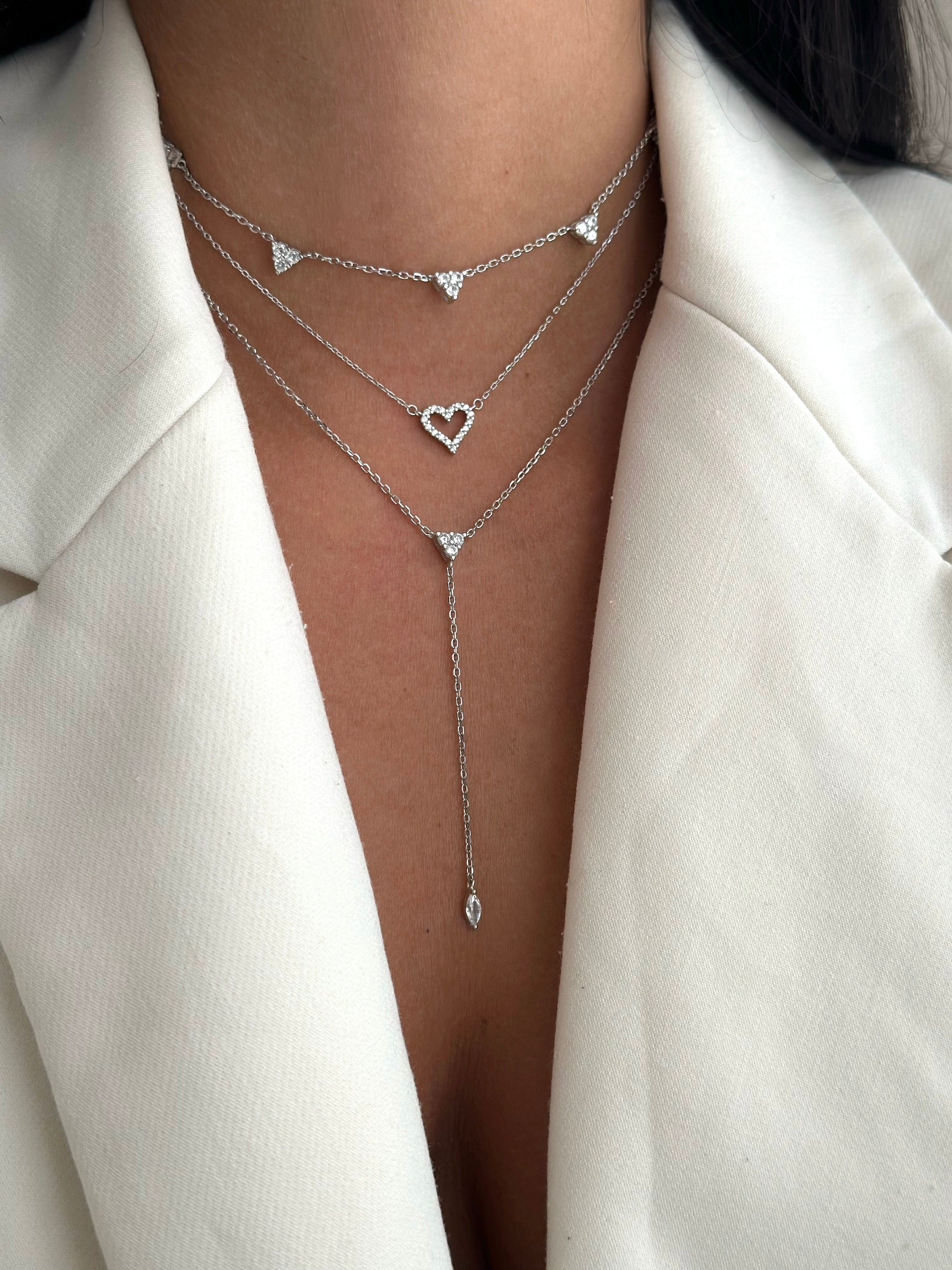 שרשרת לב זרקונים כסף 925