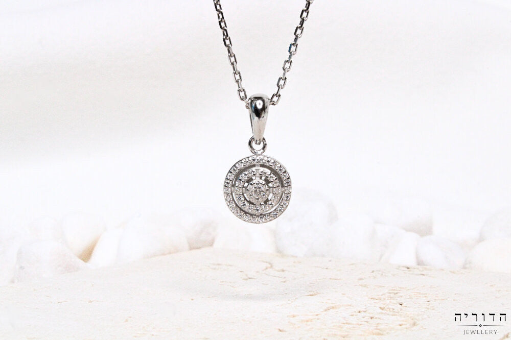 שרשרת סוליטר עגול כפול משובץ זרקונים כסף 925