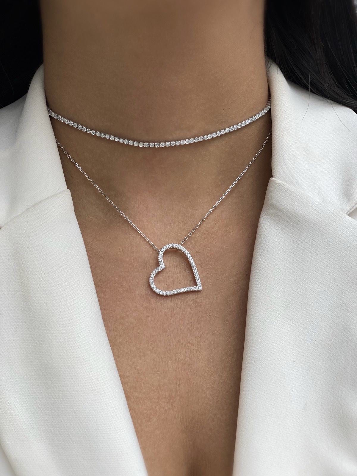 שרשרת לב פתוח משובץ זרקונים כסף 925