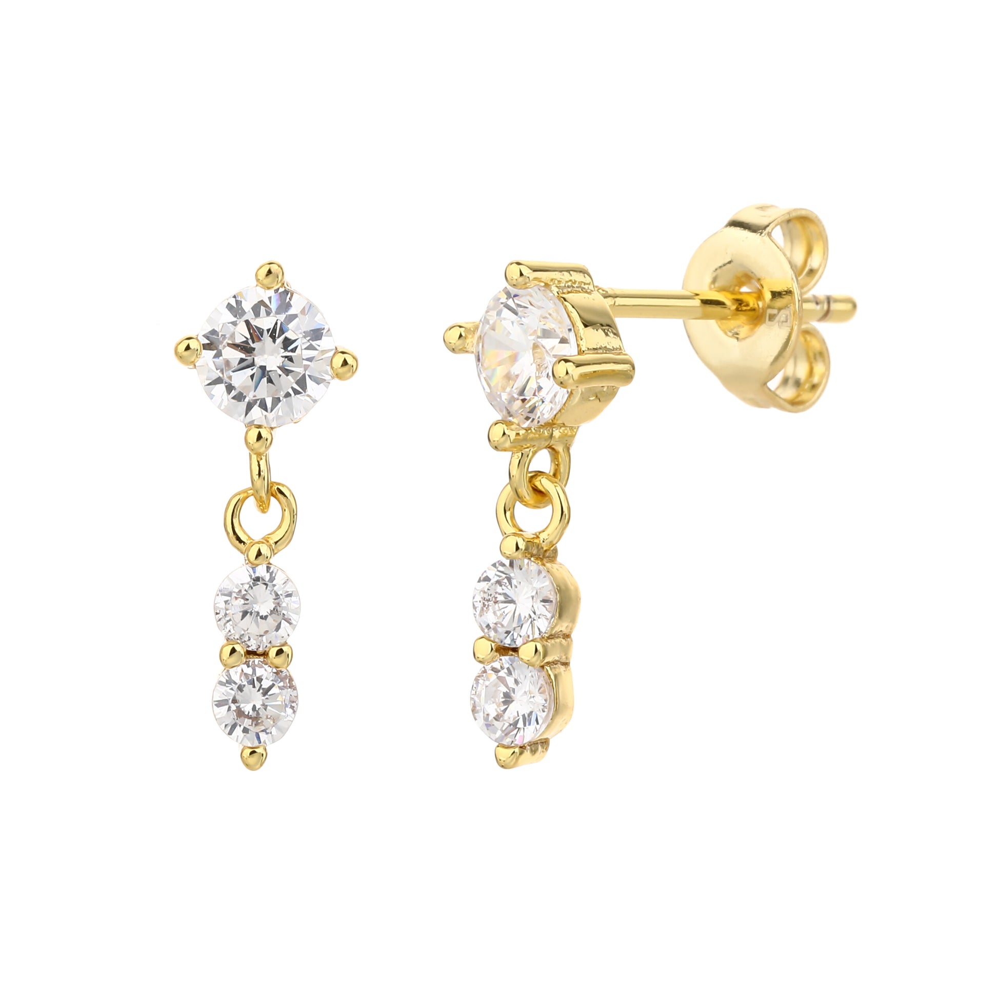 עגיל נופל בשיבוץ 3 זרקונים נוצצים, העגילים עשויים פליז בציפוי זהב 14k.