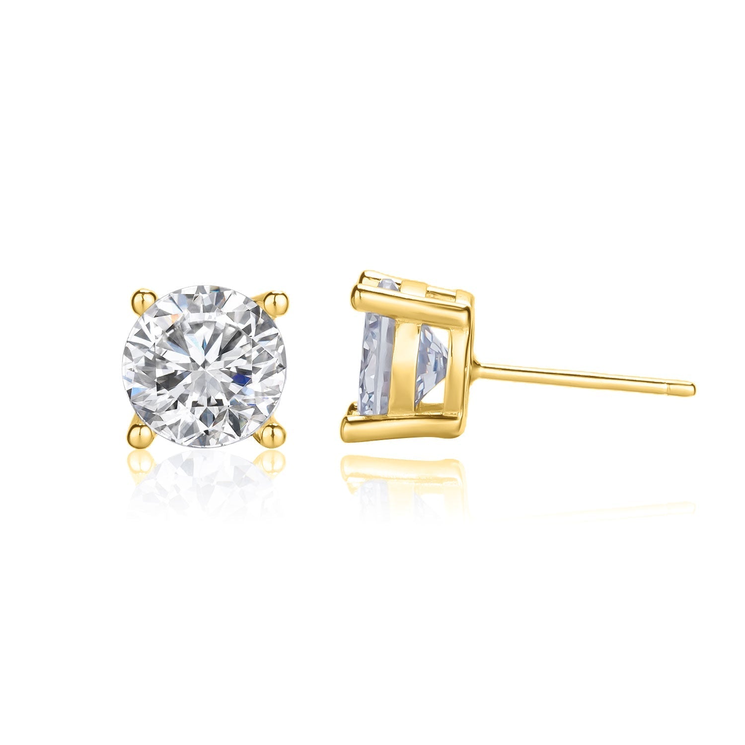 עגילי סוליטר צמודים, עשויים פליז בציפוי זהב 14k.