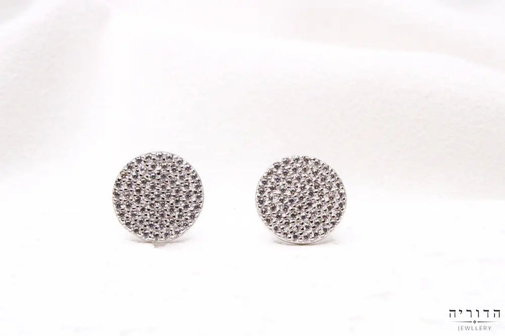 עגילי פלטה עגולים צמודים כסף 925 משובצים זרקונים
