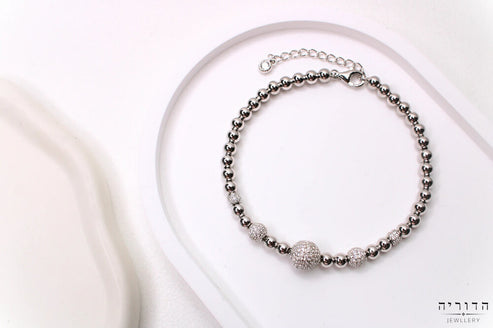 צמיד כסף חרוזים וכדורים משובצים זרקונים