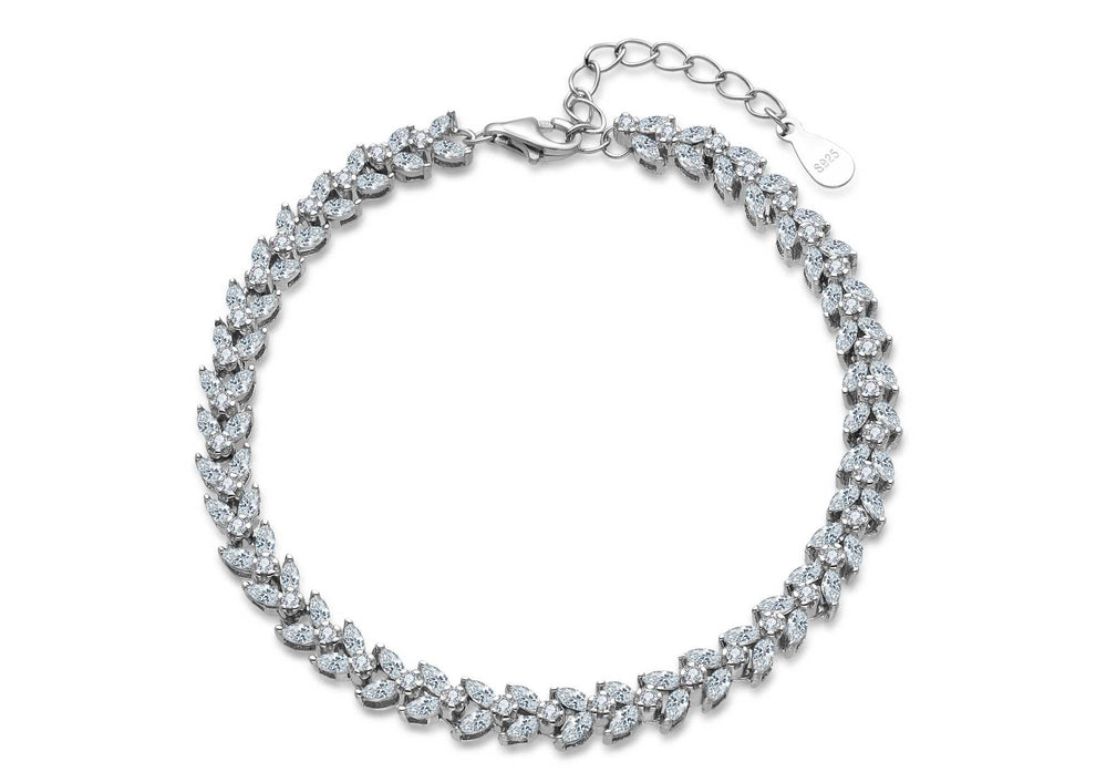 צמיד שנראה מיוחד אבל מרגיש טבעי ליום-יום. העיצוב חיטה יוצר תנועה עדינה – זרקונים בצורות מרקיזה וטיפה שמסתדרים בשורה רציפה ונוצצת.