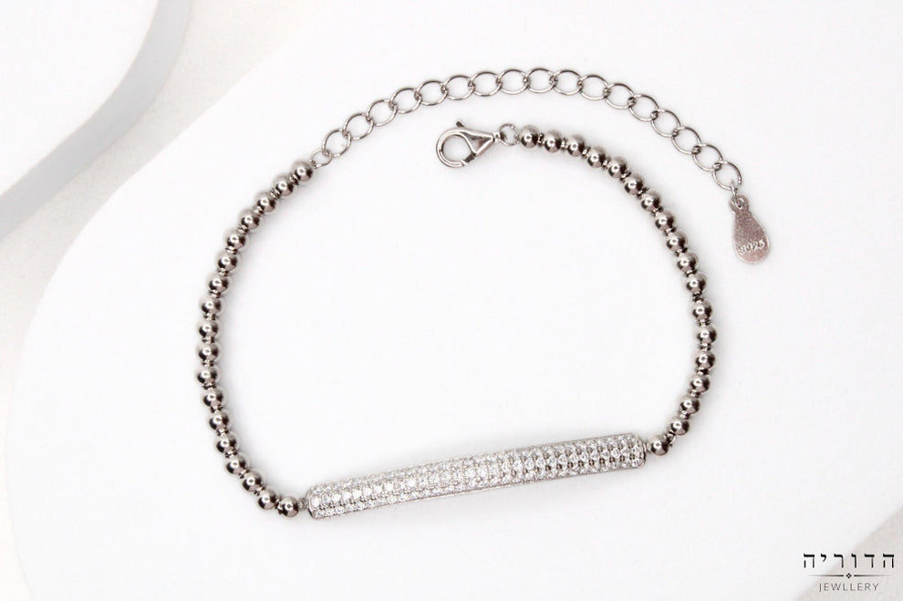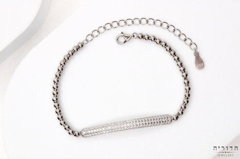 צמיד כדורים עם פס זרקונים כסף 925