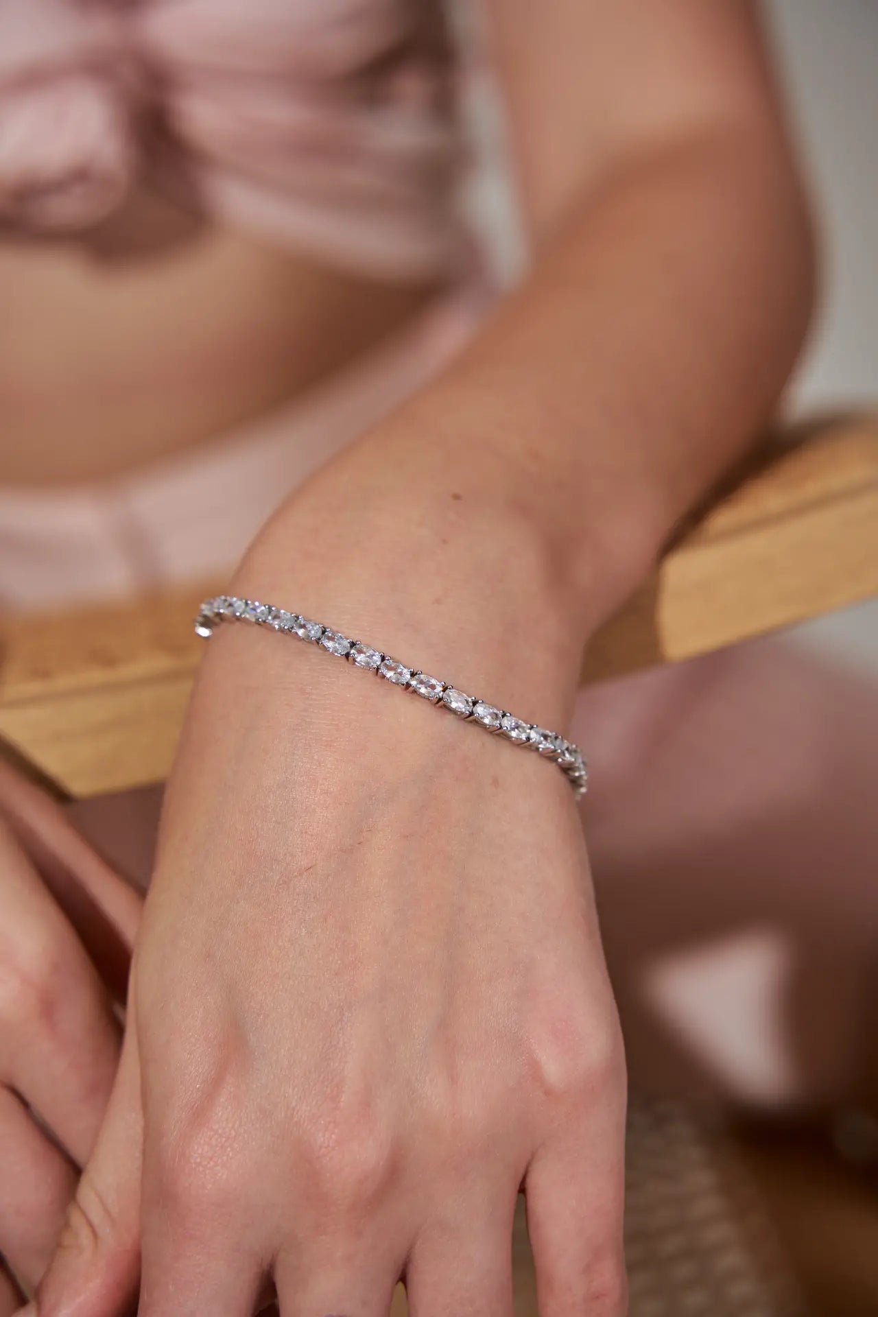 צמיד שעובד. פשוט ככה. שורה אחת של אבנים, רצופה לגמרי, בלי הפסקות. זה נותן את הזוהר הזה שלא מנסה יותר מדי חזק.