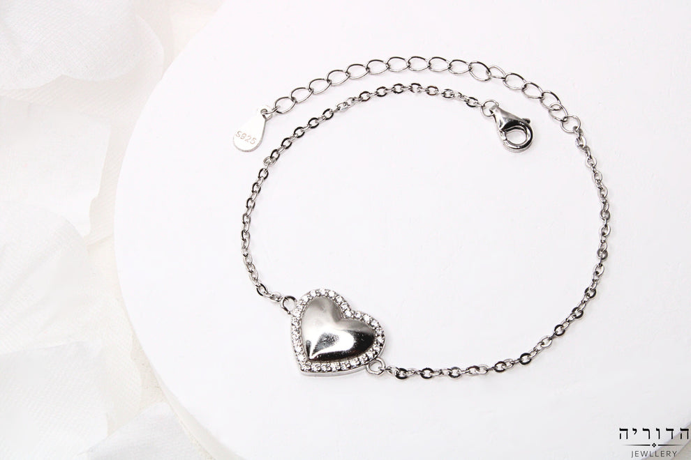 צמיד לב כסף עם זרקונים