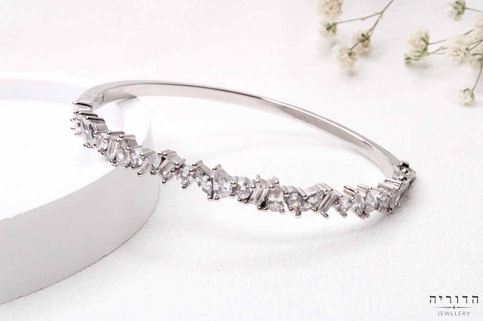צמיד קשיח כסף 925 זרקונים באגט