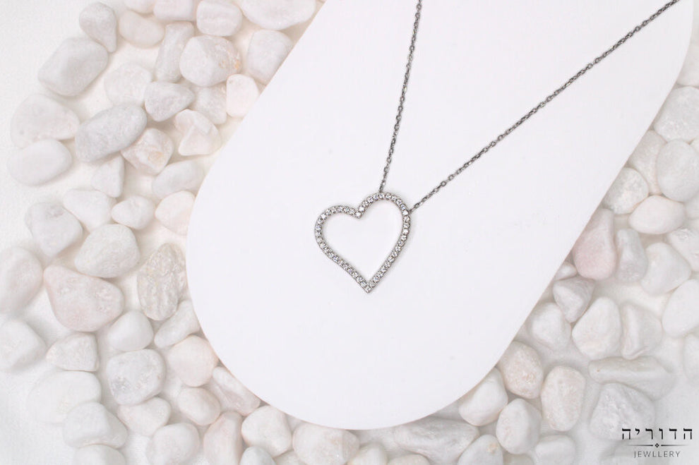 שרשרת לב פתוח משובץ זרקונים כסף 925