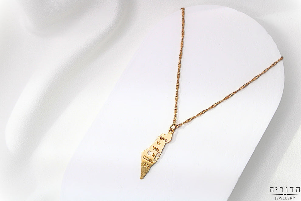שרשרת מפת ישראל זהב עם חריטה | תליון וינטג'