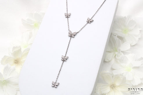 שרשרת עניבה פרפרים כסף 925 זרקונים