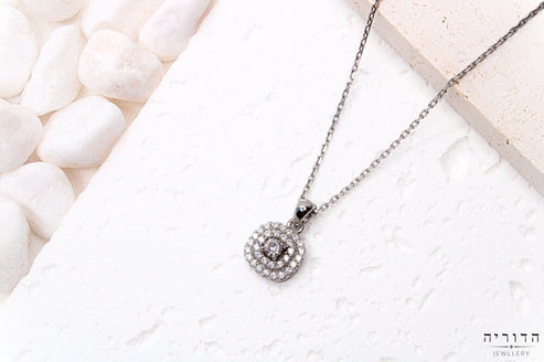 שרשרת זרקון מרכזי שיבוץ כפול כסף 925