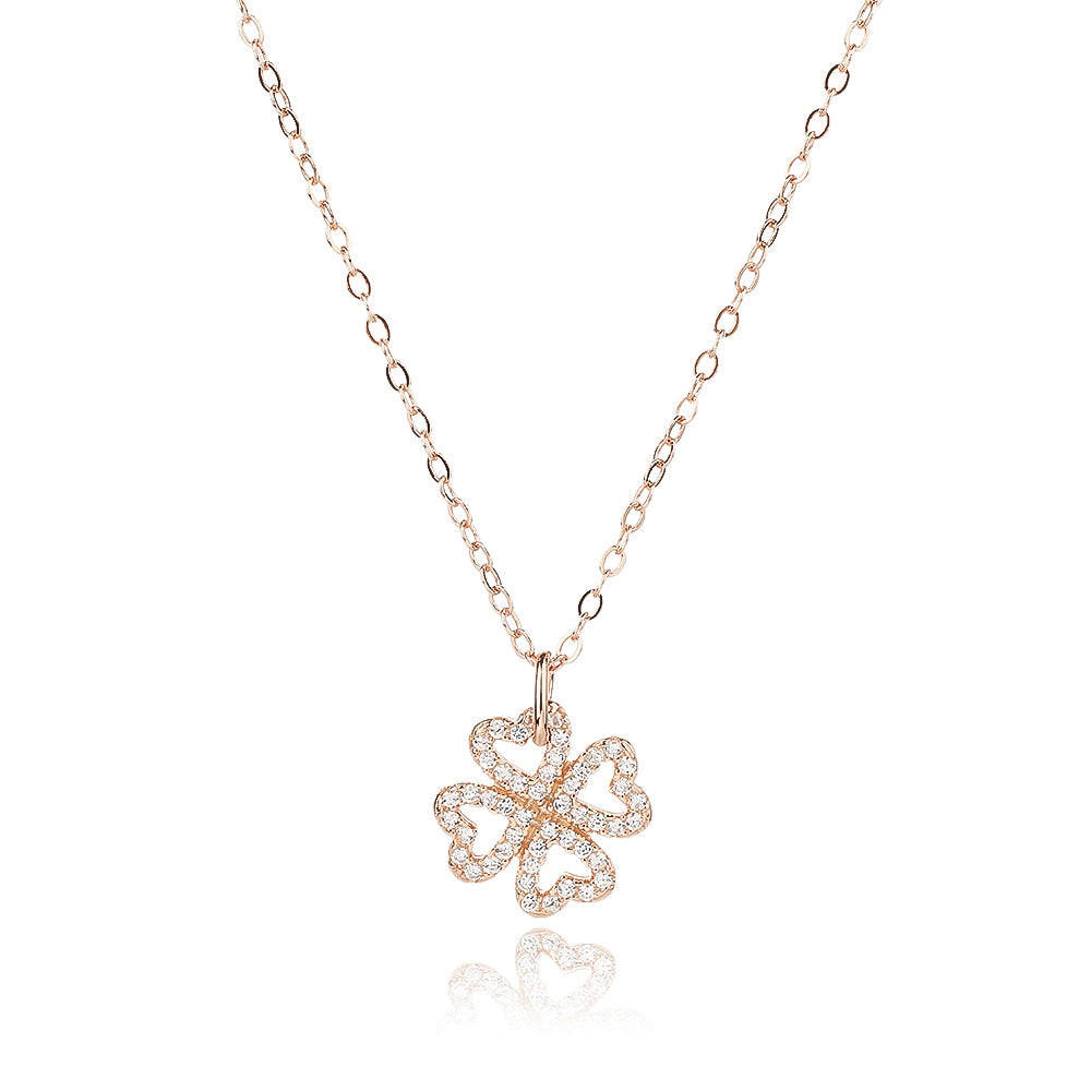 שרשרת עדינה עם תליון בצורת תלתן, עשויה כסף 925 טהור בציפוי זהב אדום (רוז גולד) משובצת זרקונים קטנים שמוסיפים לה נצנוץ אלגנטי ועדין. עיצוב מוקפד שמוסיף נגיעה של יוקרה לכל מראה, בין אם יומיומי או מיוחד יותר.