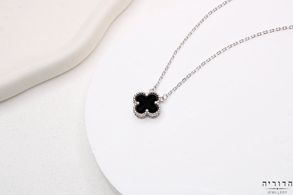 שרשרת תלתן אמייל שחור כסף 925