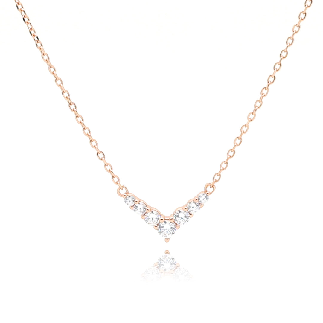 שרשרת V משובצת, עשויה כסף 925 טהור בציפוי זהב אדום (רוז גולד)