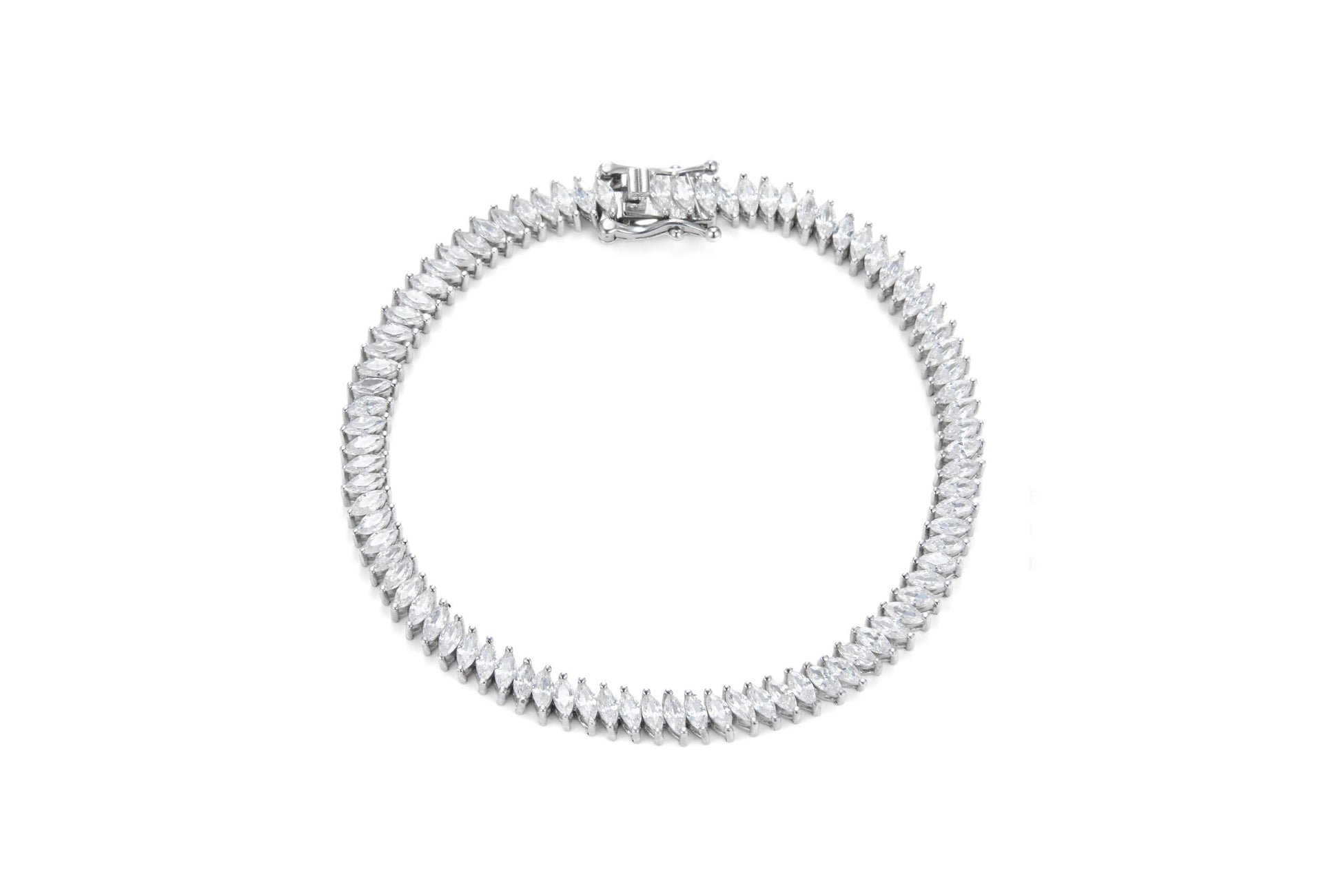 צמיד טניס מכסף 925 עם זרקונים בחיתוך מרקיז במידה 4*2 מ״מ. מתאים לענידה יומיומית ולאירועים מיוחדים.