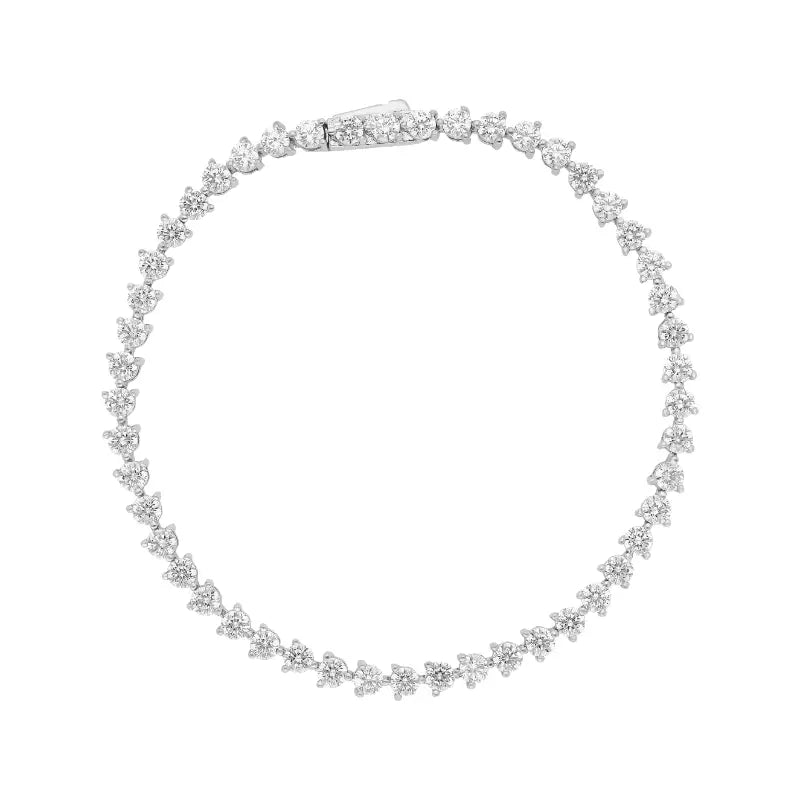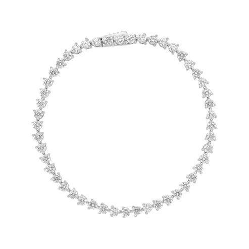 צמיד טניס מכסף 925 עם אבני זרקון בגודל 2.5 מ"מ, בשיבוץ שפיץ שנותן קו מדויק ונקי. השפיץ הוא מה שהופך את הצמיד הזה לשונה – במקום עיגול חלק, יש כאן זווית. זווית שנותנת אופי.
