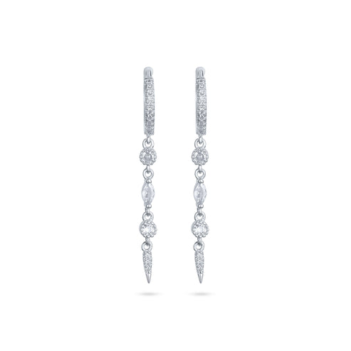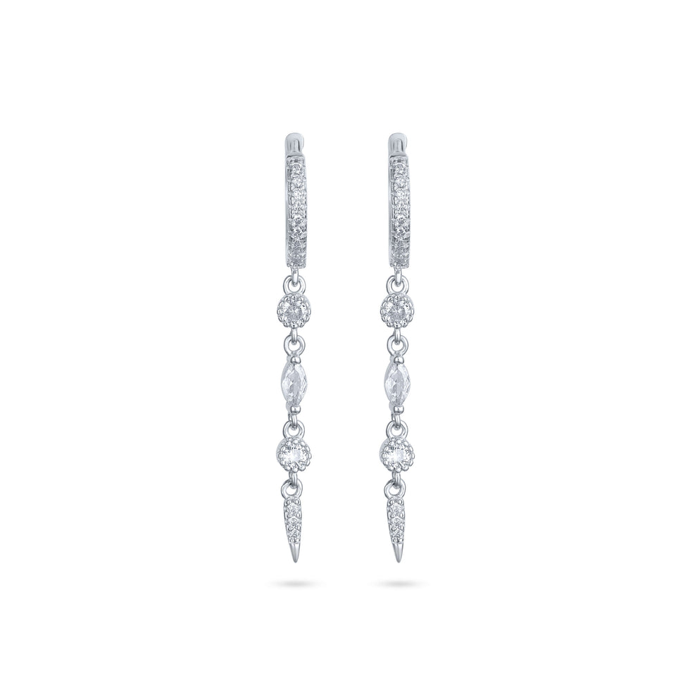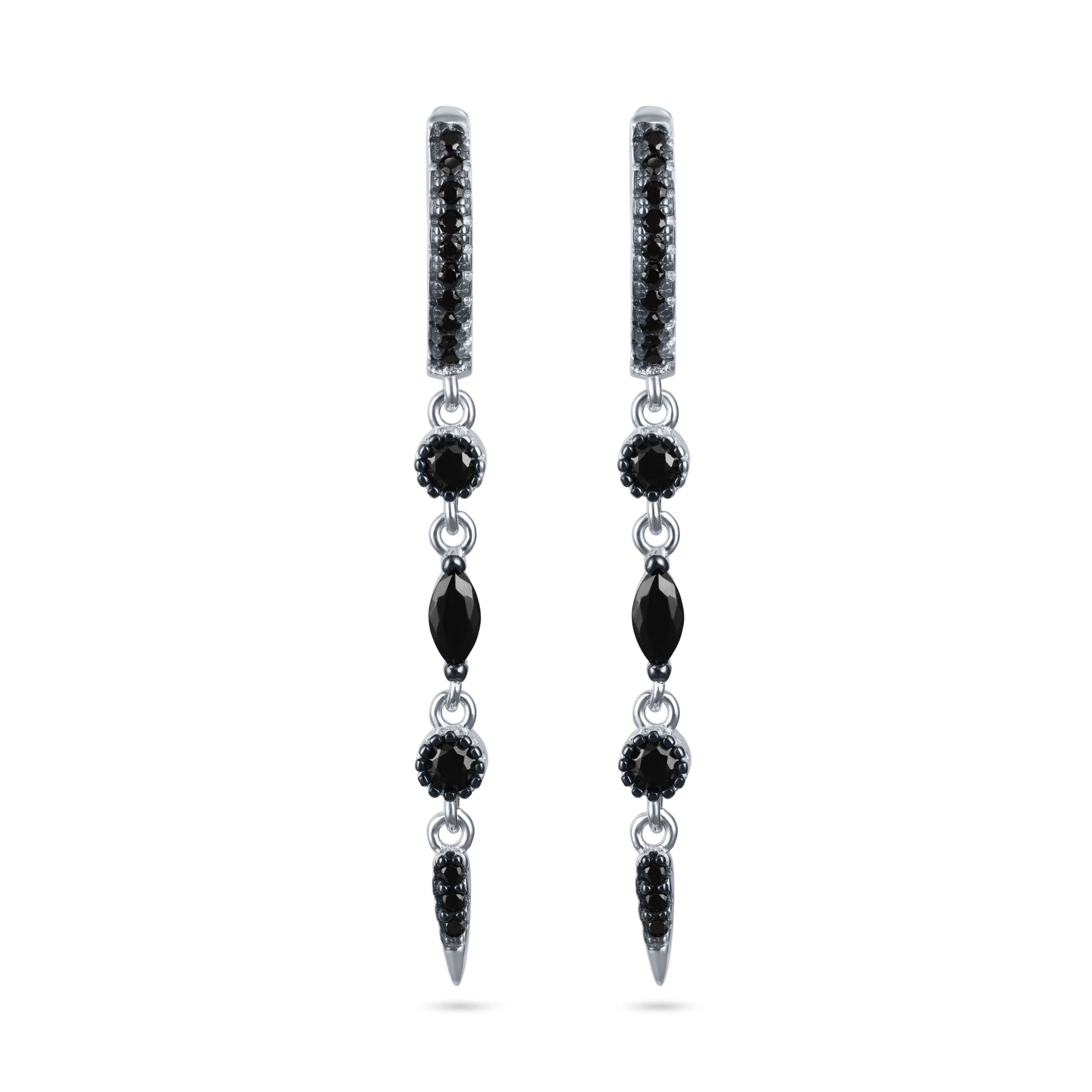 עגילי חישוק כסף 925 משובצים זרקון שחור