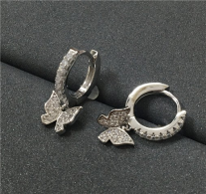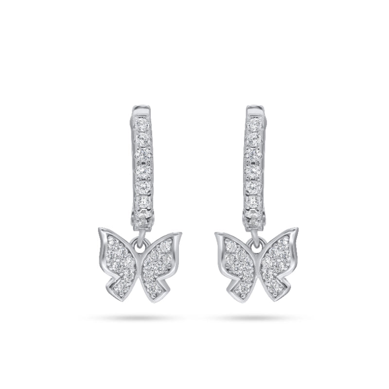 עגילי חישוק פרפר כסף 925 משובצים זרקון
