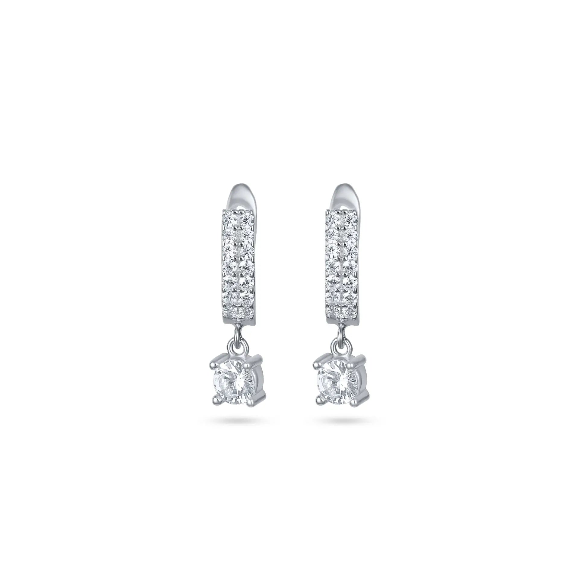 עגילי חישוק כסף 925 משובצים שתי שורות זרקונים