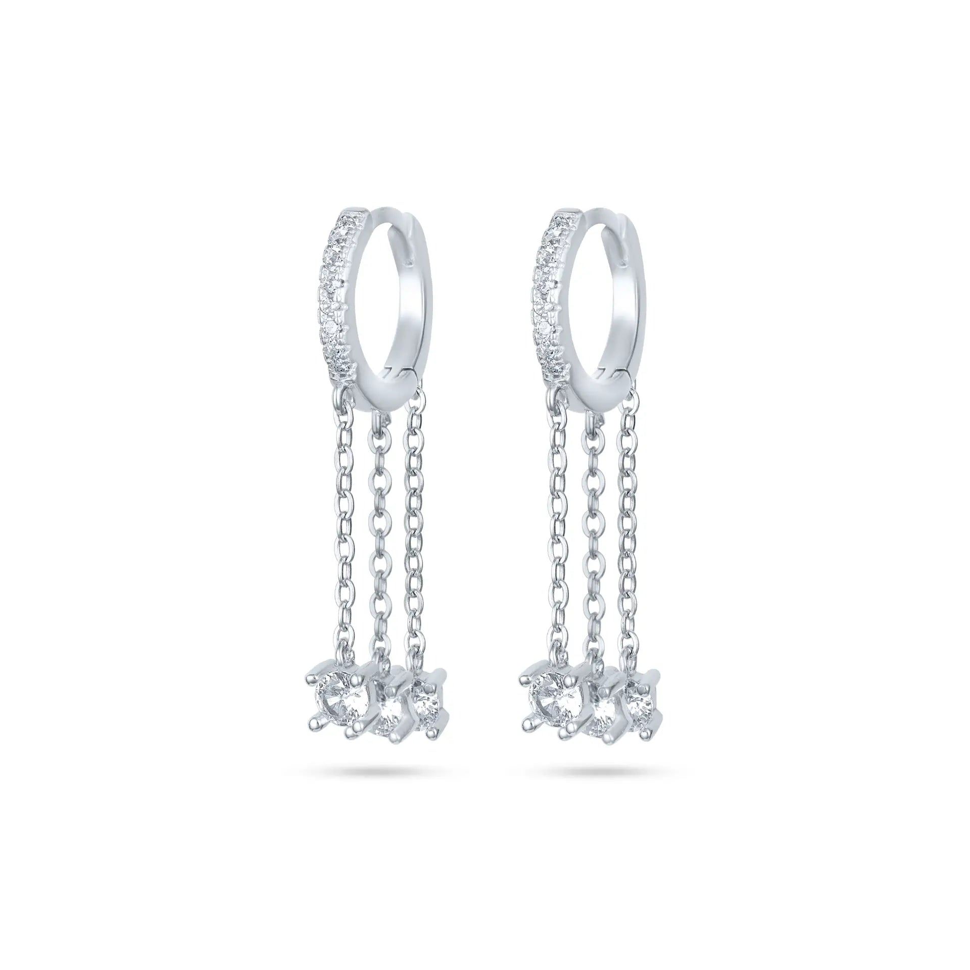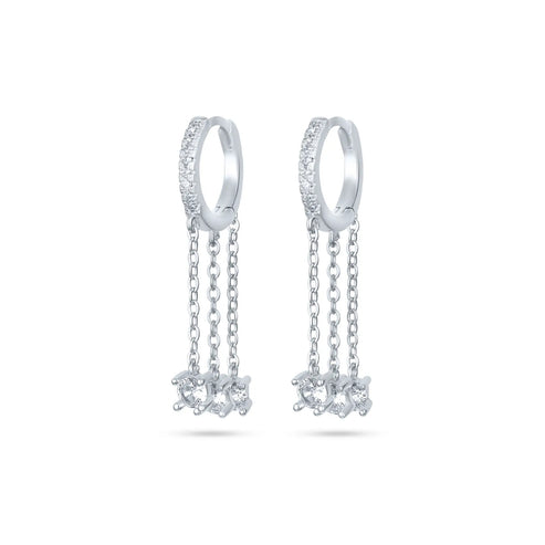 עגילי חישוק כסף 925 עם שרשראות תלויות