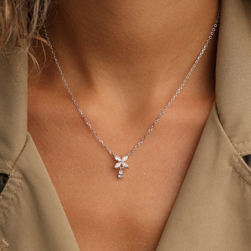 שרשרת כסף 925 פרח משובץ זרקונים עם טיפה