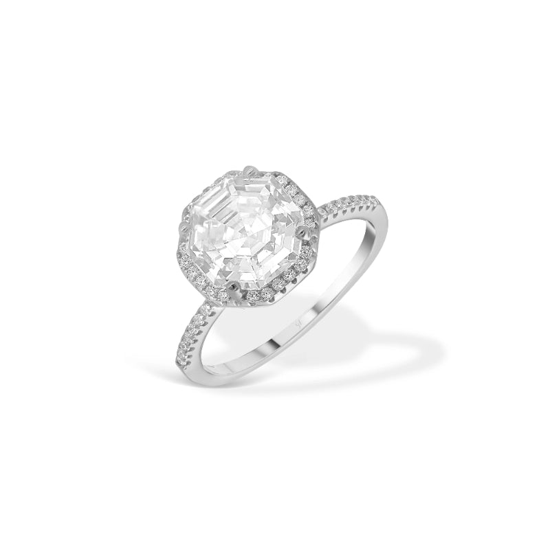 טבעת כסף 925 סוליטר משושה משובצת זרקונים