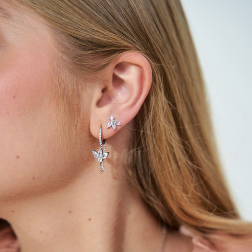 עגילי לוטוס צמודים משובצים זירקון כסף 925