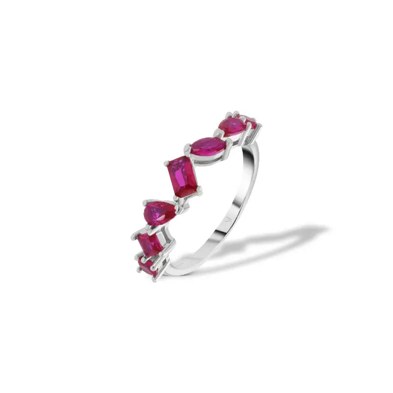 - שיבוץ רציף של זרקונים ורודים לאורך כל הטבעת