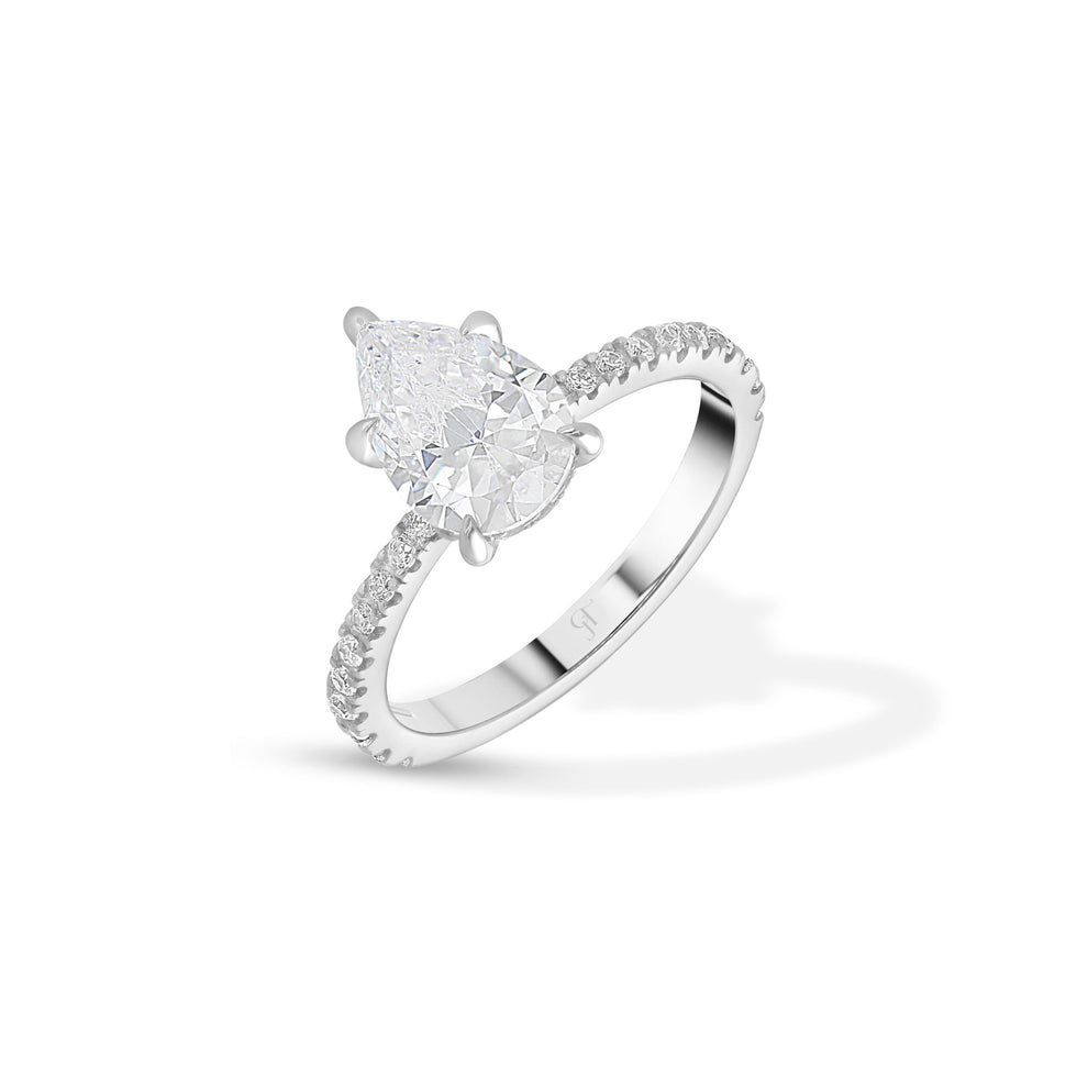 טבעת כסף 925 עם אבן טיפה מרכזית ושיבוץ זרקון