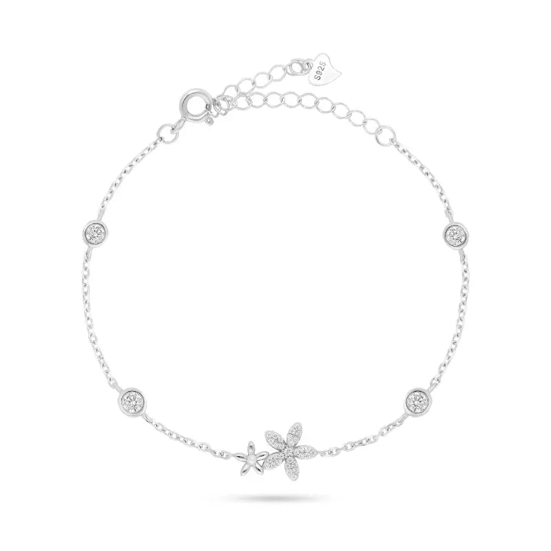 צמיד כסף 925 עם פרחים משובצים זירקונים