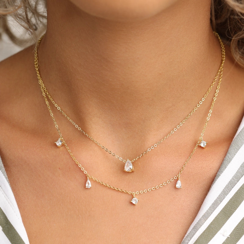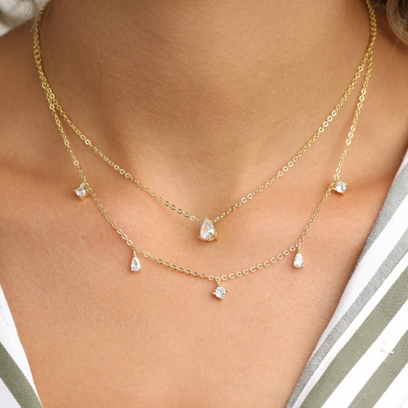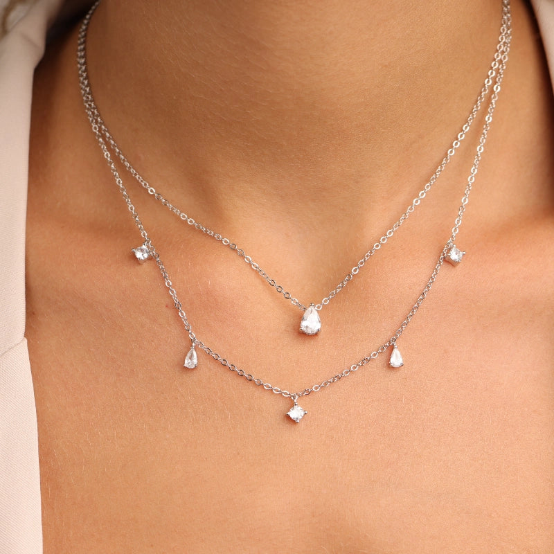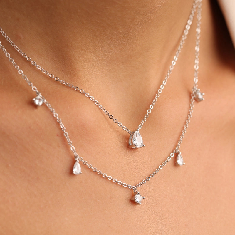 שרשרת כסף שתי שכבות תליוני טיפות זרקון