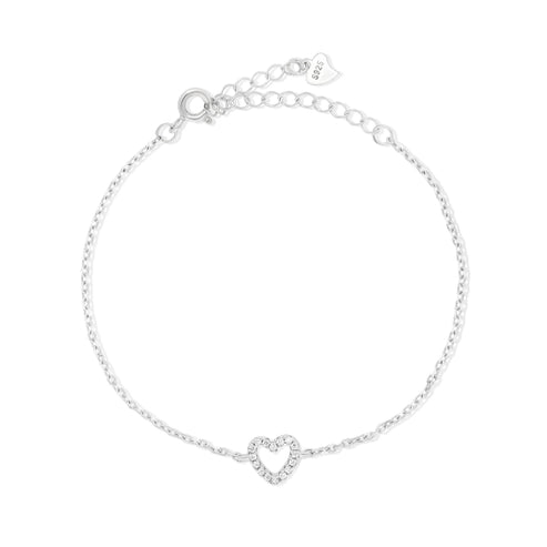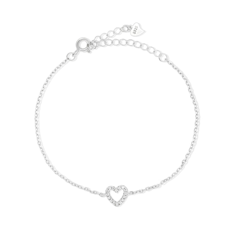 צמיד כסף לב חלול משובץ זרקון | תכשיט יומיומי אלגנטי