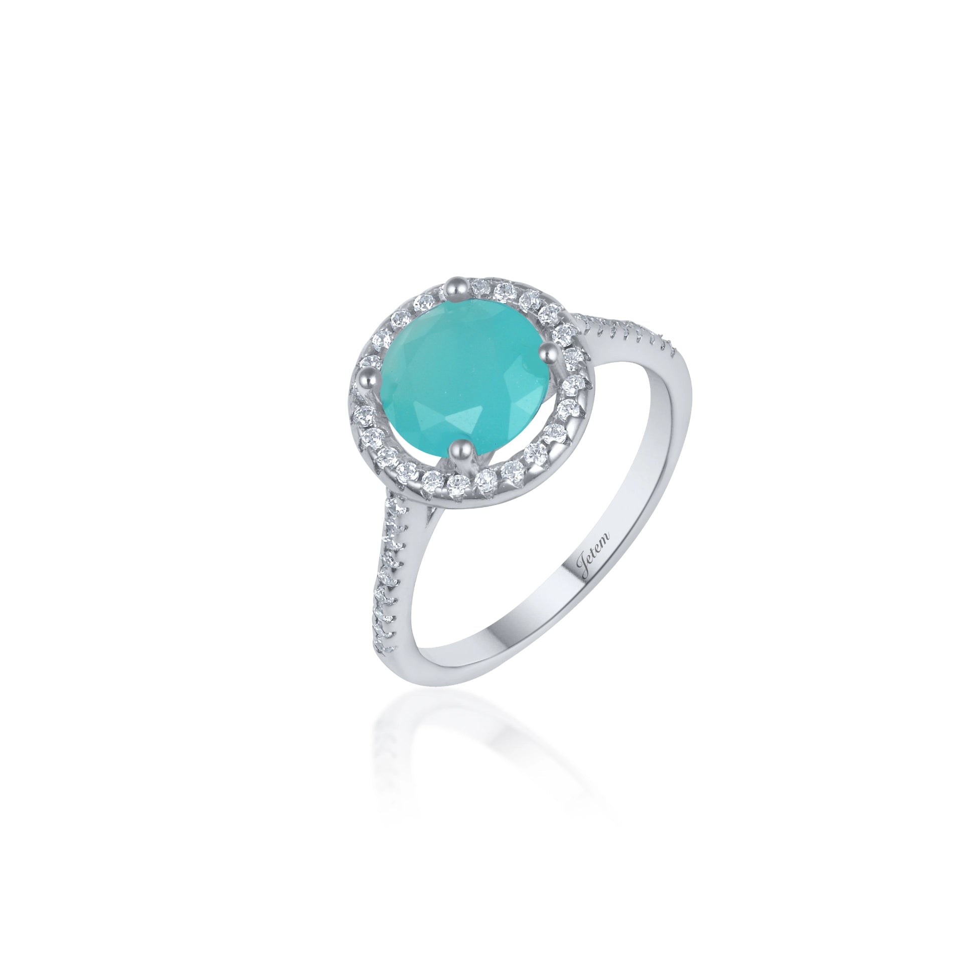 טבעת כסף סוליטר עם אבן טורקיז ושיבוץ זרקונים